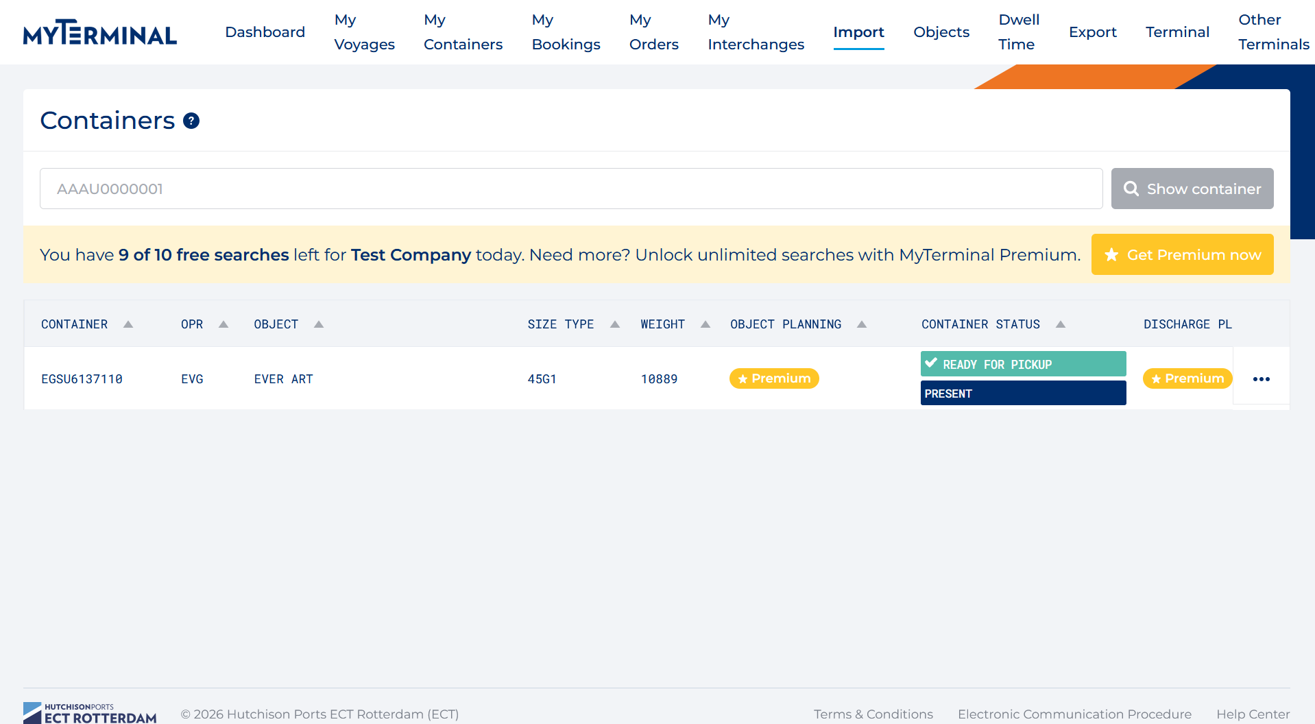 It's possible to search for 10 containers per day as a free company. You can search for one container at a time.